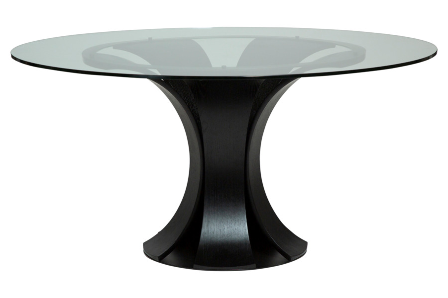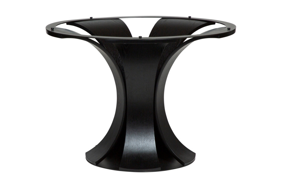 Η μαύρη βάση με τον γλυπτικό, οργανικό σχεδιασμό και τις καμπύλες γραμμές προσδίδει ένταση και μοναδική ταυτότητα, μετατρέποντας το τραπέζι σε κεντρικό στοιχείο διακόσμησης.
