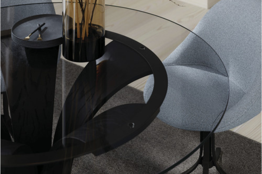 Η στρογγυλή γυάλινη επιφάνειά του προσφέρει κομψότητα και οπτική ελαφρότητα, δημιουργώντας μια αίσθηση ευρυχωρίας και καθαρότητας στον χώρο.