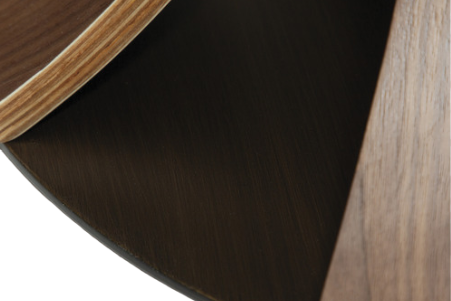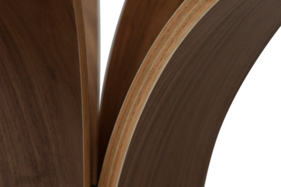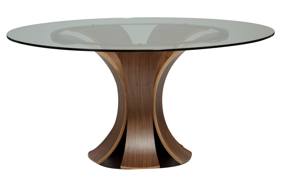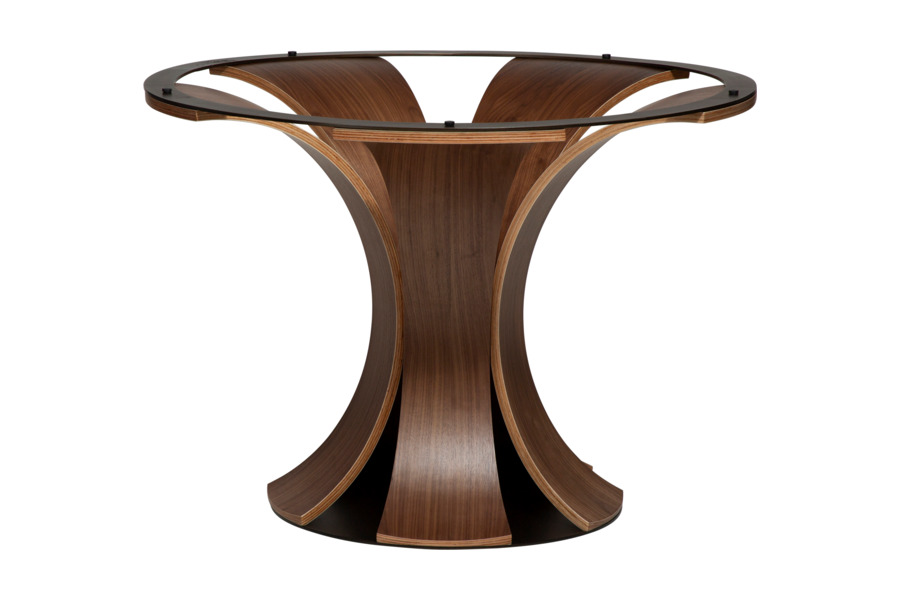 Η βάση σε απόχρωση καρυδιάς με τον χαρακτηριστικό γλυπτικό σχεδιασμό και τις καμπύλες γραμμές προσδίδει μοναδικό χαρακτήρα και ζεστή αισθητική, καθιστώντας το τραπέζι κεντρικό στοιχείο διακόσμησης.