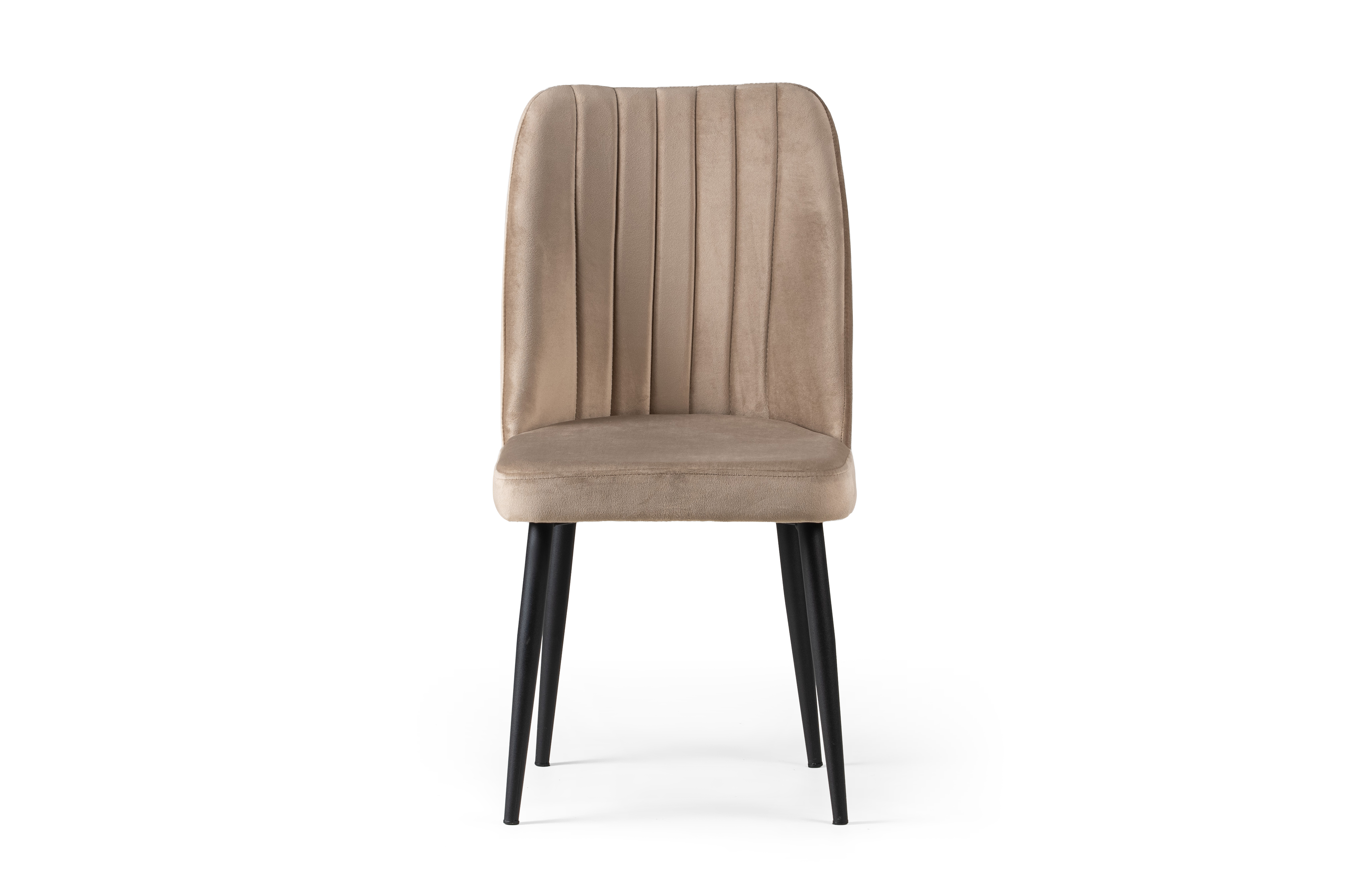 Η καρέκλα τραπεζαρίας Mira συνδυάζει κομψότητα και σύγχρονο design, προσφέροντας μια εκλεπτυσμένη επιλογή για κάθε χώρο τραπεζαρίας ή σαλονιού. Η επένδυση από απαλό βελούδινο ύφασμα χαρίζει πολυτελή υφή και αίσθηση άνεσης, ενώ οι κάθετες διακοσμητικές ραφές στην πλάτη δημιουργούν ένα ιδιαίτερο αισθητικό αποτέλεσμα.
