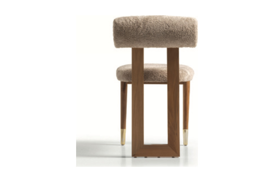 Ο μοναδικός σχεδιασμός της πλάτης και οι μεταλλικές λεπτομέρειες στα πόδια δημιουργούν ένα εκλεπτυσμένο αποτέλεσμα, καθιστώντας την ιδανική επιλογή για τραπεζαρίες, επαγγελματικούς χώρους, boutique ξενοδοχεία ή μοντέρνα καθιστικά.
