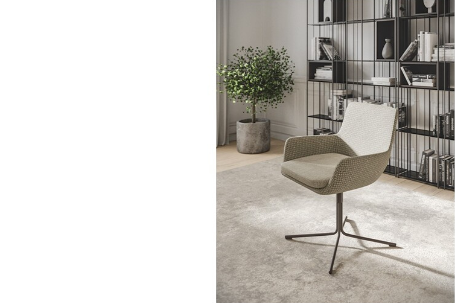 Η μεταλλική βάση τύπου cross διαθέτει περιστροφικό μηχανισμό με auto-return, επαναφέροντας το κάθισμα στην αρχική του θέση για πρακτικότητα και κομψότητα στον χώρο.