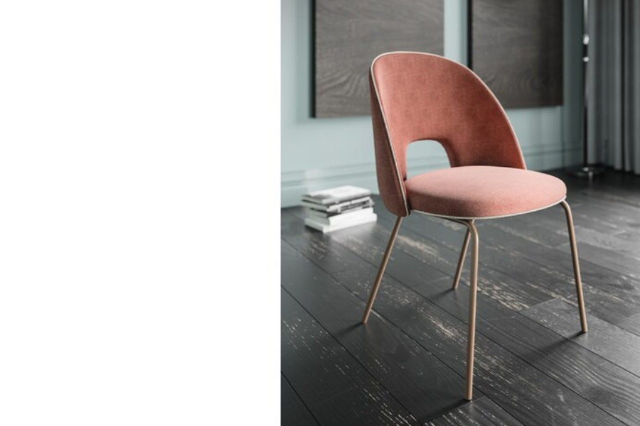 Το ενιαίο, καμπυλωτό κάθισμα με επένδυση προσφέρει εργονομική στήριξη, ενώ το χαρακτηριστικό άνοιγμα στην πλάτη δίνει ελαφρότητα και μοναδικό design χαρακτήρα.