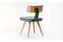 Καρέκλα τραπεζαρίας Fox σε μοντέρνο ύφος από μασίφ ξύλο δρυς.Στη φωτογραφία το χρώμα του ξύλου είναι φυσικό δρυς. Το ύφασμα είναι σε σχέδιο pie de poul, γκρι με μπλε και φυτίλι πράσινο που συνδυάζεται υπέροχα με την πράσινη λάκα στην πλάτη. Το προϊόν είναι ελληνικής παραγωγής και παραδίδεται συναρμολογημένο.