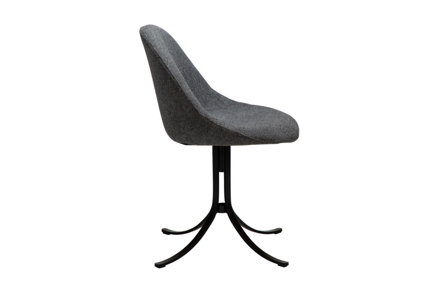 Η κατασκευή βασίζεται σε formpressed κέλυφος, διατηρώντας τη δομή ελαφριά και ανθεκτική, ενώ ο σχεδιασμός αντλεί έμπνευση από τη mid-century αισθητική. Η μεταλλική βάση σε trumpet σχήμα ξεχωρίζει για τον χαρακτήρα της, ενώ η περιστρεφόμενη λειτουργία με μηχανισμό αυτόματης επαναφοράς (auto-return) προσφέρει πρακτικότητα και ευκολία στην καθημερινή χρήση.