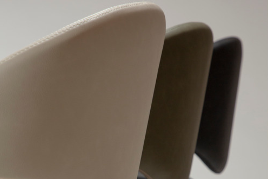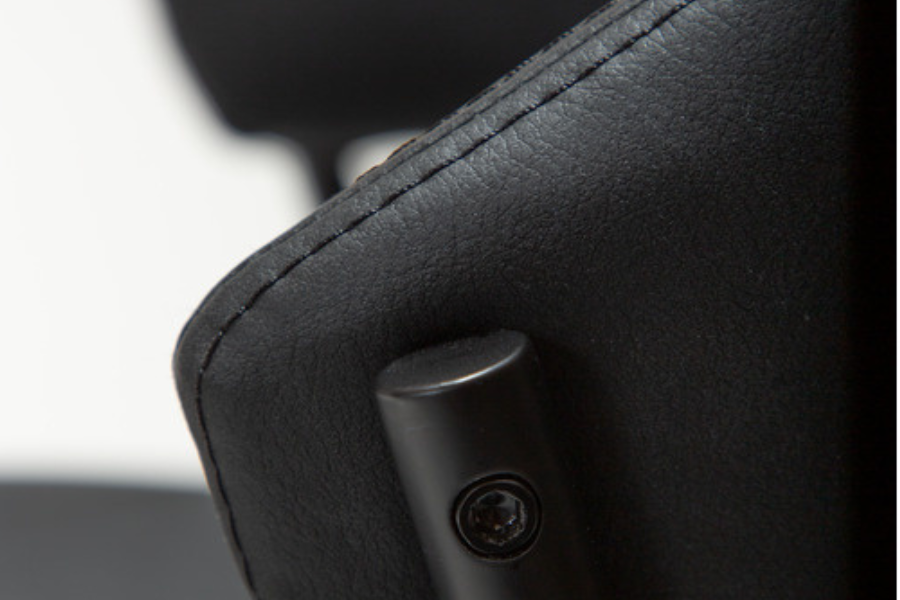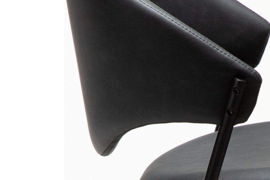 Το κάθισμα και η πλάτη διαθέτουν επένδυση από τεχνητό δέρμα σε raven black απόχρωση, προσφέροντας λεία υφή και εύκολη συντήρηση. Η εργονομική καμπύλη της πλάτης υποστηρίζει σωστά το σώμα, ενισχύοντας την άνεση κατά τη χρήση.