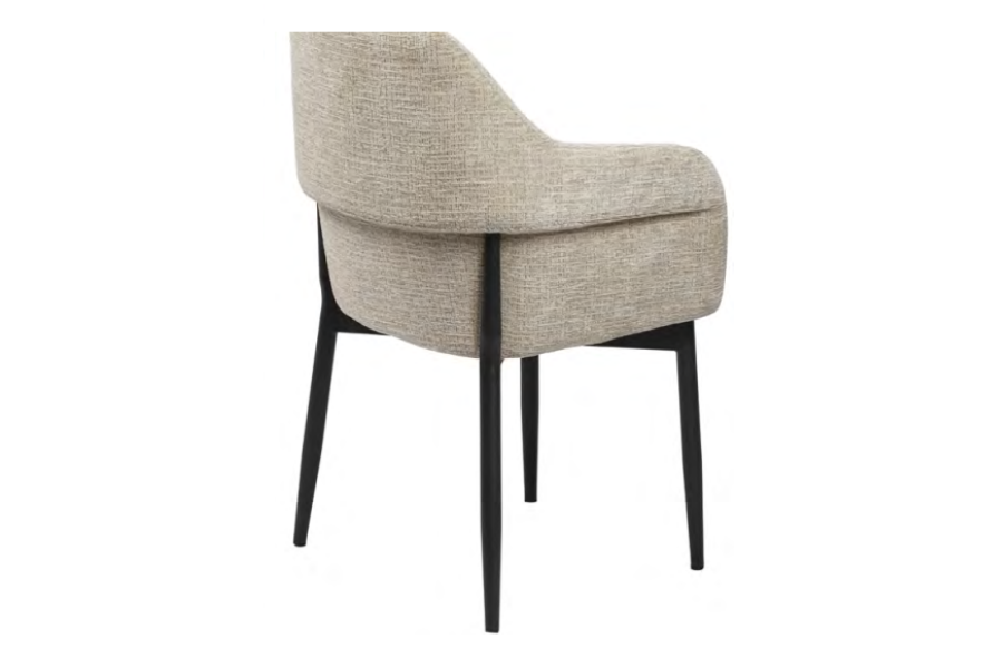 Τα μαύρα μεταλλικά πόδια προσδίδουν σταθερότητα και στιβαρότητα, ενώ παράλληλα δημιουργούν μια κομψή αντίθεση με το μπεζ ύφασμα, αναδεικνύοντας τον σύγχρονο χαρακτήρα της καρέκλας. Η Selene αποτελεί ιδανική επιλογή για σύγχρονες κατοικίες, minimal ή μοντέρνα interiors, αλλά και για ξενοδοχεία, cafés και επαγγελματικούς χώρους που αναζητούν άνεση με αισθητική υψηλού επιπέδου.