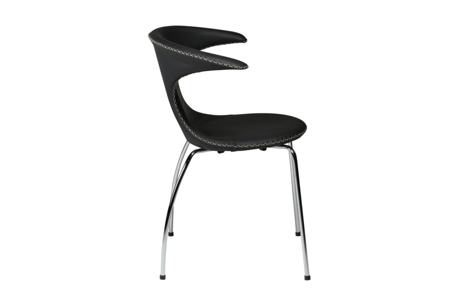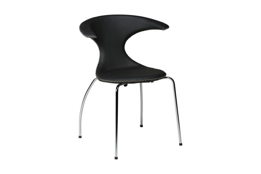 Η καρέκλα τραπεζαρίας Flair Black Leather με chrome πόδια αποτελεί μια πιο design-forward εκδοχή της σειράς, συνδυάζοντας premium υλικά με έντονο αισθητικό χαρακτήρα.