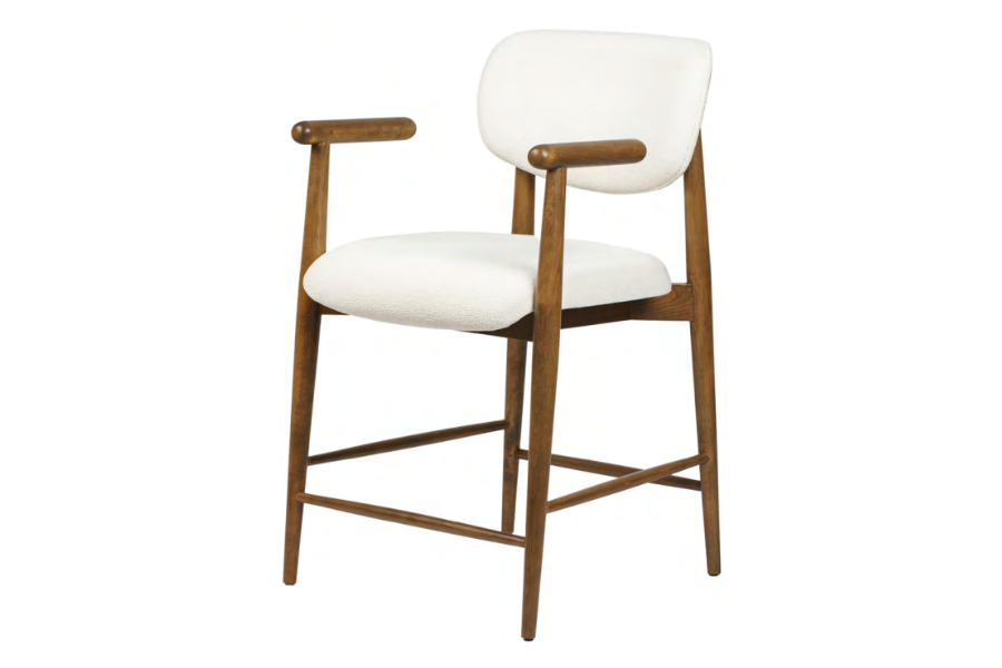 Ο ξύλινος σκελετός σε φυσική απόχρωση χαρίζει σταθερότητα και αντοχή, ενώ το ενσωματωμένο υποπόδιο συμβάλλει στην ξεκούραστη στάση του σώματος.