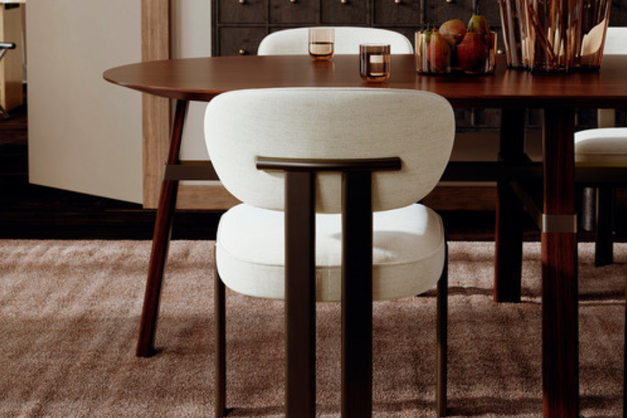 Οι καρέκλες της σειράς Duct ξεχωρίζουν για τον αρχιτεκτονικό σχεδιασμό τους, με τα χαρακτηριστικά παράλληλα πίσω πόδια και τις καθαρές γραμμές. Η επένδυση από bouclé ύφασμα προσφέρει υφή και άνεση, ενώ το εργονομικό κάθισμα εξασφαλίζει καθημερινή ευχρηστία.