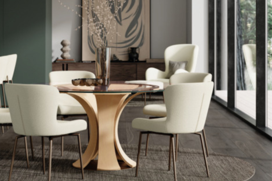 Το σετ τραπεζαρίας GLORY αποτελεί μία ολοκληρωμένη πρόταση για μοντέρνους χώρους, συνδυάζοντας κομψότητα, άνεση και διαχρονικό design.