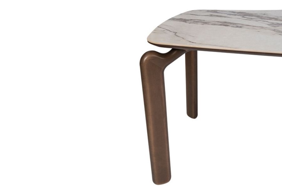 Η ξύλινη βάση, με καμπύλες και στιβαρές γραμμές, προσδίδει σταθερότητα και ζεστασιά, ενώ αναδεικνύει τον σχεδιασμό με διακριτική κομψότητα.