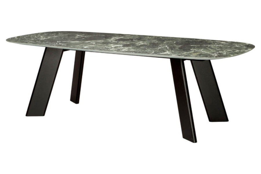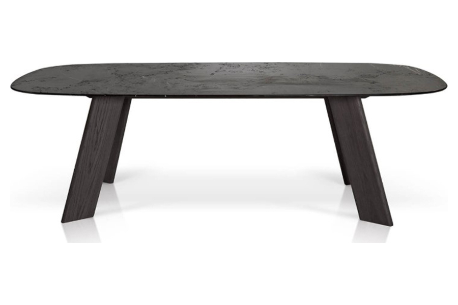 Η βάση σε σκούρα απόχρωση με καθαρές γεωμετρικές γραμμές προσφέρει σταθερότητα και ισορροπία ενώ ταυτόχρονα ενισχύει τον minimal χαρακτήρα του τραπεζιού. Ο σχεδιασμός του είναι διαχρονικός και προσαρμόζεται εύκολα σε μοντέρνες τραπεζαρίες.