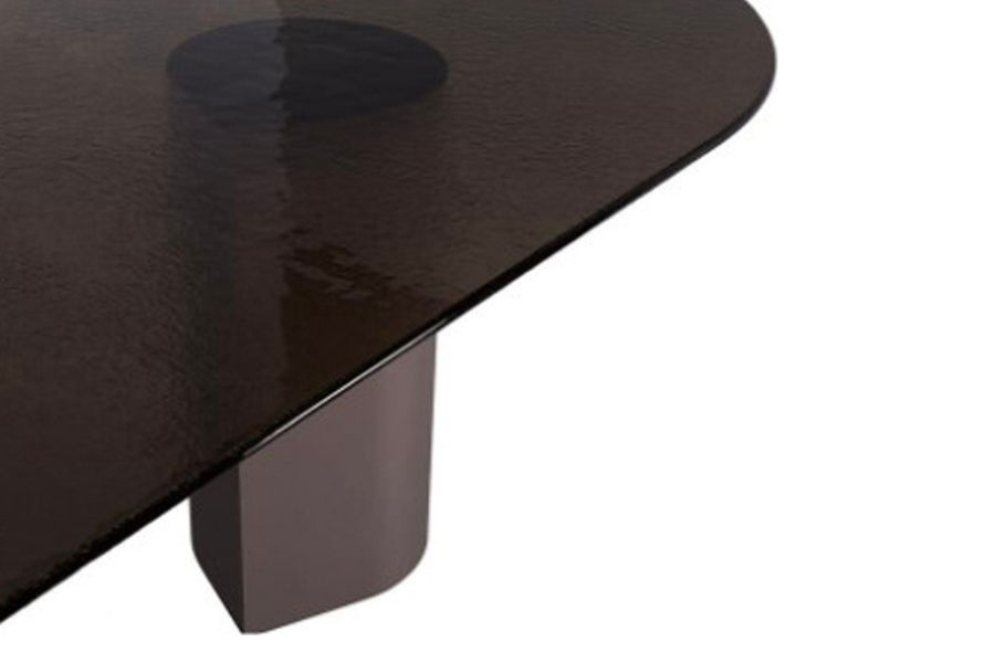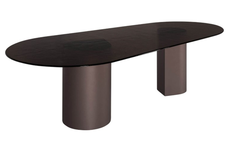 Η βάση με τις κυλινδρικές μορφές προσδίδει σταθερότητα και έντονο design χαρακτήρα ενώ ταυτόχρονα ενισχύει τη μοναδικότητα του επίπλου. Ο συνδυασμός λιτών γραμμών και δυναμικών όγκων δημιουργεί μια εντυπωσιακή αισθητική παρουσία.