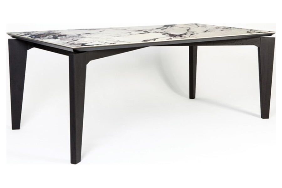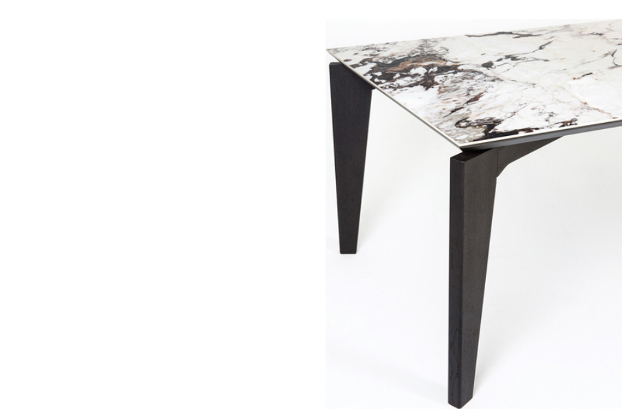 Η βάση σε σκούρα απόχρωση δημιουργεί μία δυναμική αντίθεση με την επιφάνεια, ενισχύοντας το minimal και σύγχρονο ύφος του τραπεζιού. Η στιβαρή κατασκευή εξασφαλίζει αντοχή και σταθερότητα, ενώ ο σχεδιασμός επιτρέπει άνετη χρήση και εργονομία.