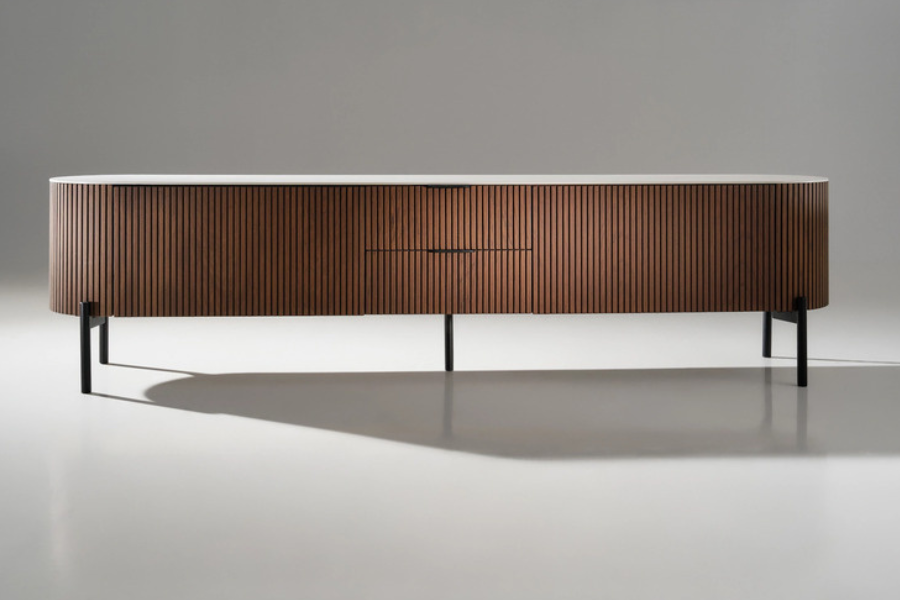 TV έπιπλο με καμπύλες γραμμές και ραβδωτή ξύλινη πρόσοψη   ...περισσότερα
