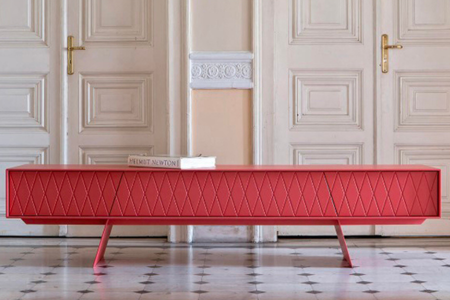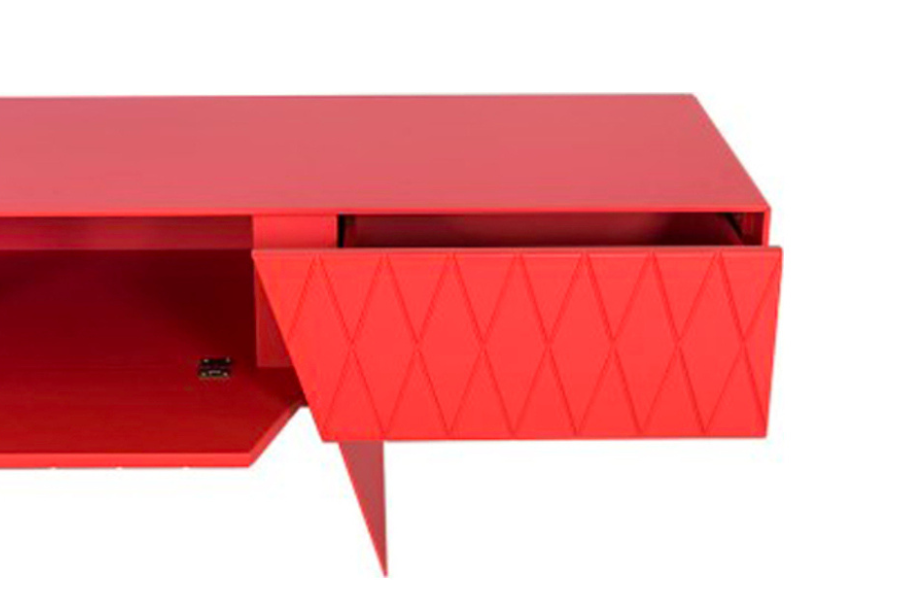 Το έπιπλο TV E KLIPSE 019 αποτελεί ένα ιδιαίτερο design κομμάτι που ξεχωρίζει για τη δυναμική του αισθητική και το έντονο χρώμα του. Η γεωμετρική πρόσοψη με μοτίβο δημιουργεί μια σύγχρονη και καλλιτεχνική εικόνα που τραβά το βλέμμα.