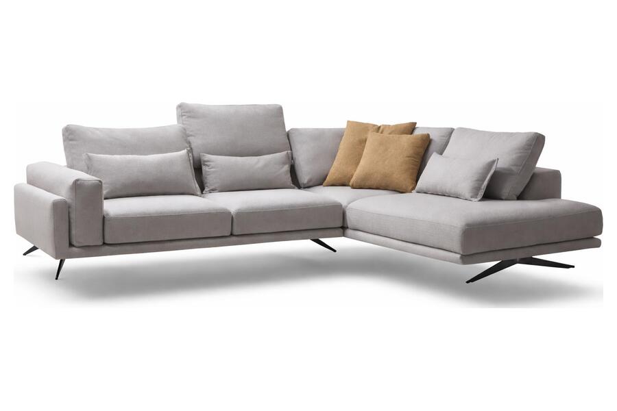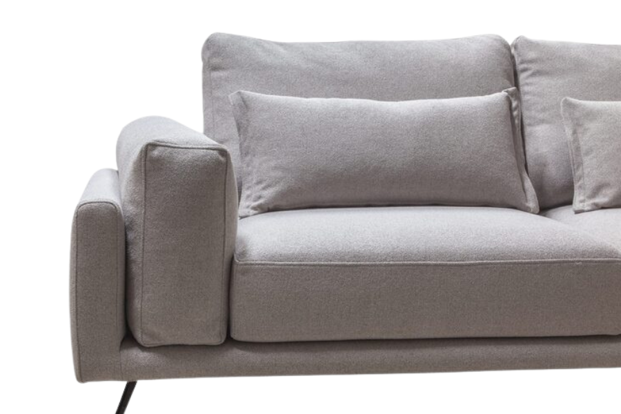Η γωνιακή του διάταξη αξιοποιεί ιδανικά τον χώρο, ενώ τα λεπτά μεταλλικά πόδια προσδίδουν ελαφρότητα και σύγχρονο χαρακτήρα. Ο σχεδιασμός του τον καθιστά εύκολα συνδυάσιμο με διαφορετικά στυλ διακόσμησης.