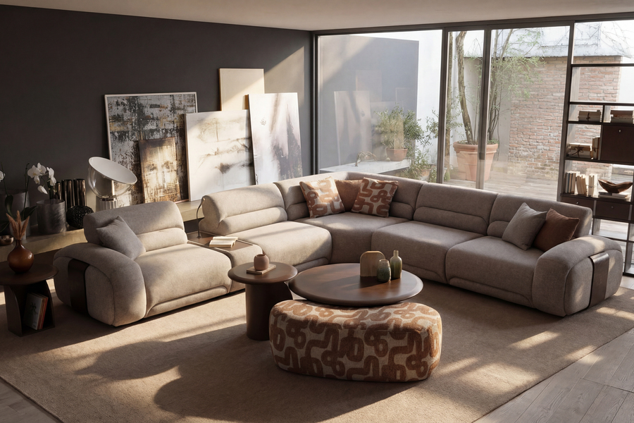 Ο γωνιακός καναπές Stark modular με ανακλίσεις αποτελεί μία ολοκληρωμένη λύση για σύγχρονα καθιστικά, προσφέροντας ευελιξία στη διαμόρφωση του χώρου.