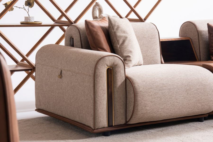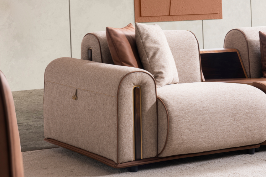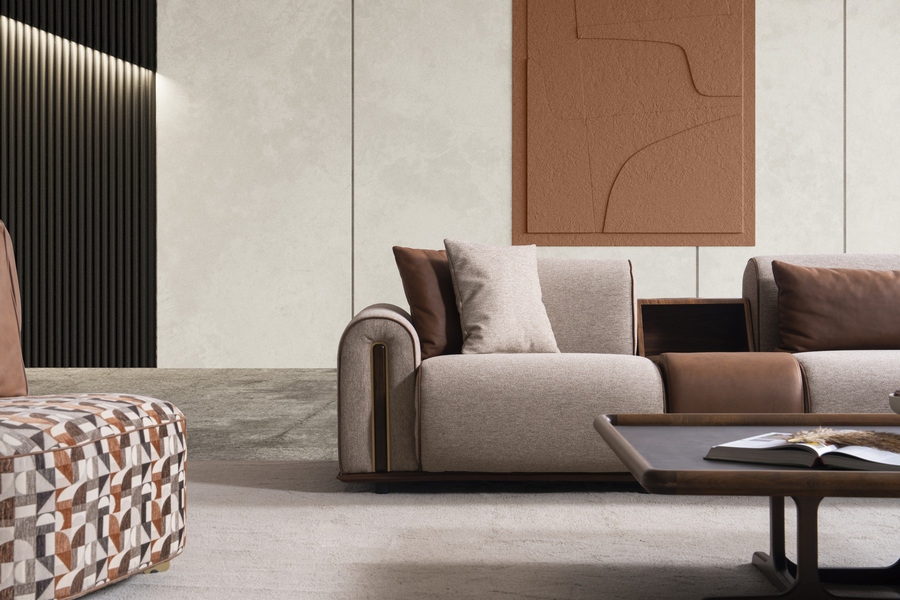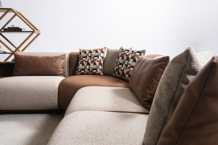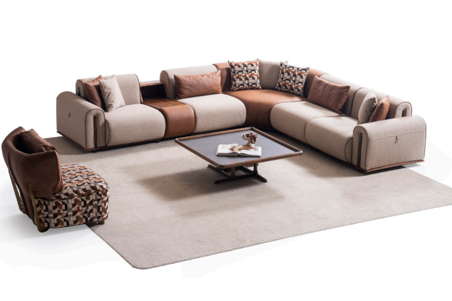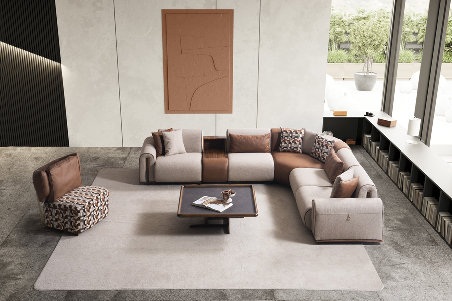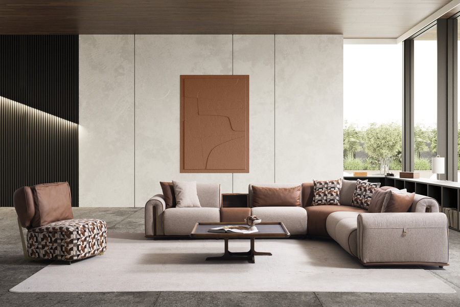 Ο γωνιακός καναπές Grande αποτυπώνει την ισορροπία ανάμεσα στη μοντέρνα αισθητική και την καθημερινή άνεση, δημιουργώντας έναν χώρο φιλοξενίας με ξεχωριστό χαρακτήρα. Ο σχεδιασμός του συνδυάζει υφάσματα και λεπτομέρειες που προσδίδουν βάθος και κομψότητα.