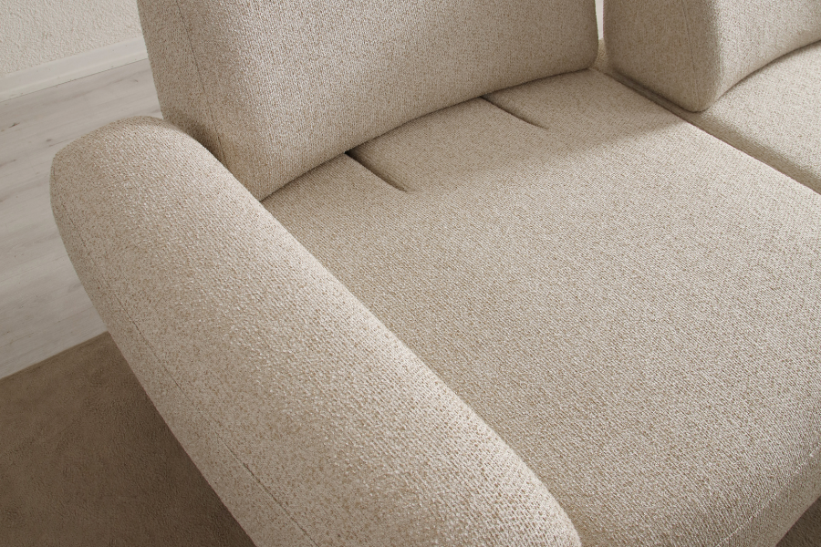 Το αλέκιαστο ύφασμα προσφέρει ευχάριστη υφή και ανθεκτικότητα στην καθημερινή χρήση, ενώ το βαθύ και άνετο κάθισμα εξασφαλίζει πραγματικά ξεκούραστη εμπειρία για όλη την οικογένεια.