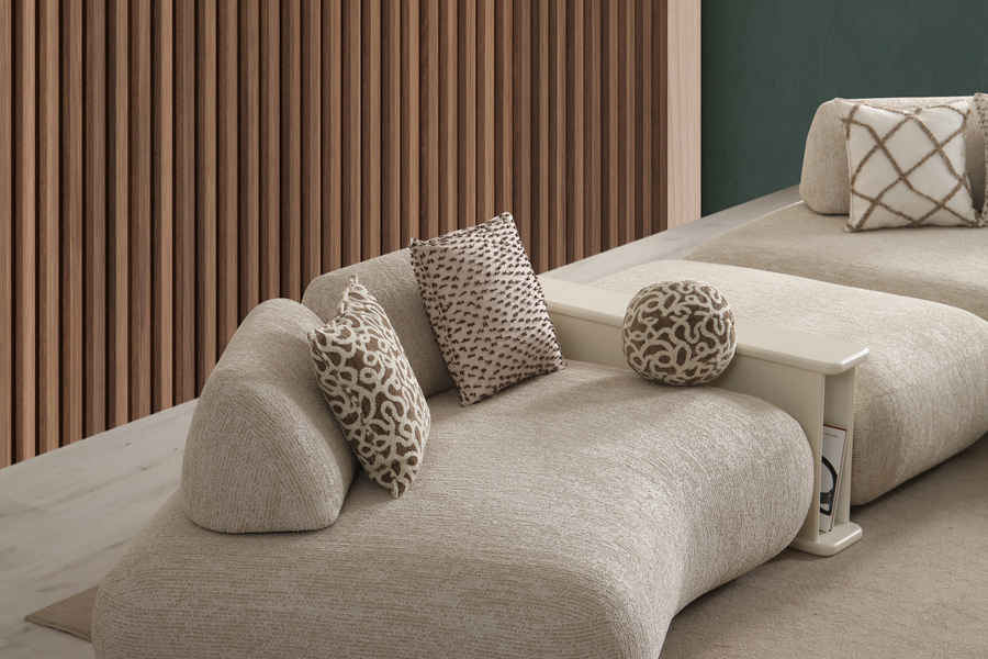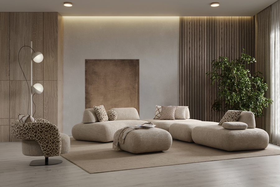 Ο γωνιακός καναπές Nora ξεχωρίζει για τον minimal σχεδιασμό του και τις απαλές καμπύλες γραμμές που προσδίδουν κομψότητα σε κάθε σαλόνι. Η χαμηλή του φόρμα και τα άνετα καθίσματα δημιουργούν έναν χαλαρωτικό και φιλόξενο χώρο.