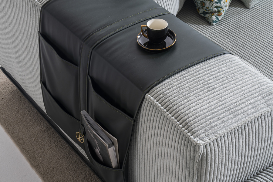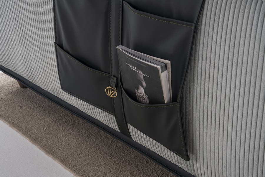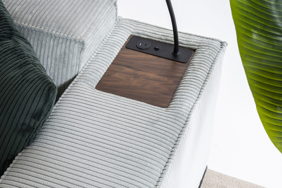 Ξεχωρίζει για τις ενσωματωμένες λειτουργικές λεπτομέρειες, όπως επιφάνεια στήριξης με παροχή ρεύματος και φωτιστικό, προσφέροντας ευκολία στη χρήση και εξυπηρέτηση στην καθημερινή ζωή. Οι ανακλίσεις στις πλάτες ενισχύουν την άνεση και την εργονομία.