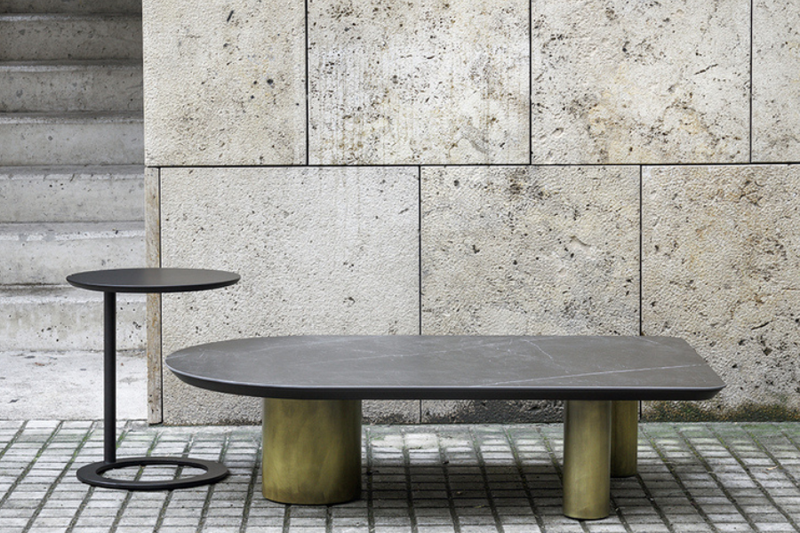 Το τραπεζάκι σαλονιού Fatbou αποτελεί μία εντυπωσιακή επιλογή με έντονο design χαρακτήρα, συνδυάζοντας πολυτελή αισθητική και σύγχρονη γεωμετρία. Η επιφάνεια σε marble-effect φινίρισμα σε σκούρους τόνους με διακριτικές νευρώσεις προσδίδει βάθος και κομψότητα. Η βάση με κυλινδρικά μεταλλικά στοιχεία σε warm αποχρώσεις δημιουργεί ένα sculptural αποτέλεσμα που ξεχωρίζει και μετατρέπει το τραπεζάκι σε focal point του χώρου. Ο σχεδιασμός του ισορροπεί ανάμεσα σε minimal και luxury αισθητική. Το χαμηλό προφίλ του ενισχύει την αίσθηση άνεσης και χαλάρωσης, ενώ η στιβαρή κατασκευή εξασφαλίζει ανθεκτικότητα και σταθερότητα. Το συνοδευτικό βοηθητικό τραπεζάκι της σειράς συμπληρώνει ιδανικά το σύνολο για layered compositions. Τα τραπεζάκια αυτού του τύπου συνδυάζουν συχνά μεταλλική βάση με κεραμική ή ξύλινη επιφάνεια, προσφέροντας μοναδικό design και αντοχή στη χρήση Το Fatbou είναι ιδανικό για modern, contemporary και luxury interiors, καθώς και για χώρους με έντονο αρχιτεκτονικό χαρακτήρα.