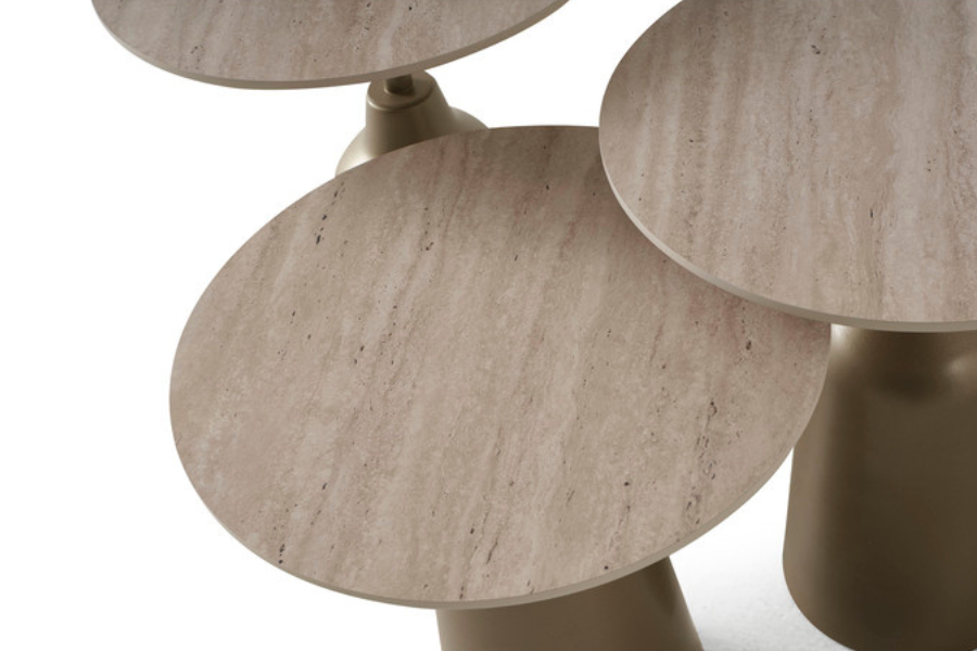 Η διαφορετική στάθμη ύψους των τραπεζιών επιτρέπει ευέλικτες συνθέσεις στον χώρο, καθιστώντας το σετ ιδανικό για σύγχρονα σαλόνια, καθιστικά και χώρους φιλοξενίας. Ένα design statement που συνδυάζει λειτουργικότητα και υψηλή αισθητική.