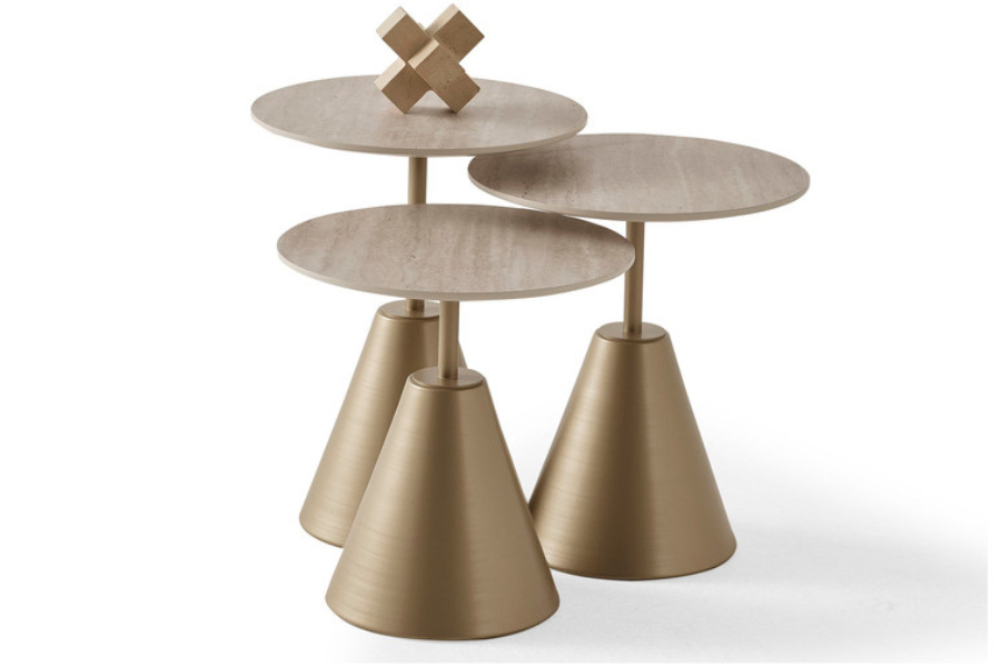 Τα τραπεζάκια διαθέτουν διαφορετικά ύψη, επιτρέποντας ευέλικτες συνθέσεις και λειτουργική χρήση στον χώρο. Μπορούν να τοποθετηθούν μαζί ως ενιαίο σύνολο ή ξεχωριστά, καλύπτοντας τόσο διακοσμητικές όσο και πρακτικές ανάγκες. Ιδανικό σετ για μοντέρνα, elegant και luxury σαλόνια.