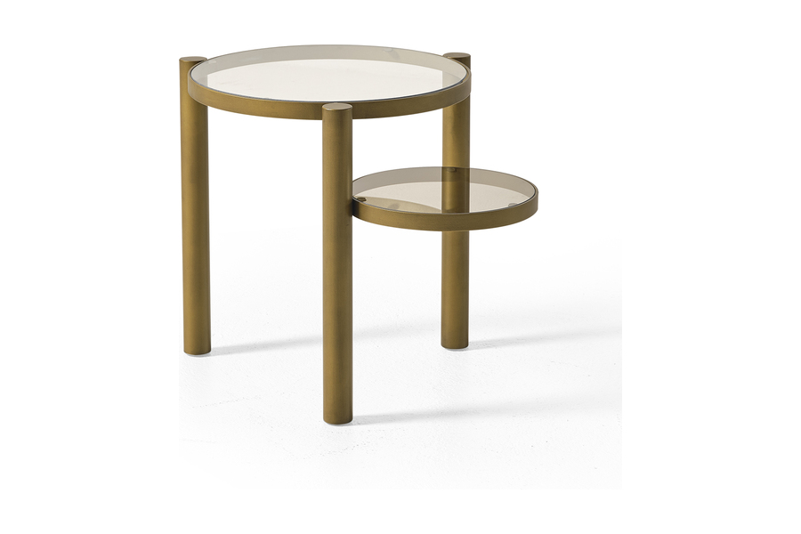 Ο σχεδιασμός του χαρακτηρίζεται από διπλή κυκλική γυάλινη επιφάνεια σε διαφορετικά επίπεδα, προσφέροντας πρακτικότητα και ευελιξία στη χρήση, ιδανική για την τοποθέτηση διακοσμητικών ή καθημερινών αντικειμένων.