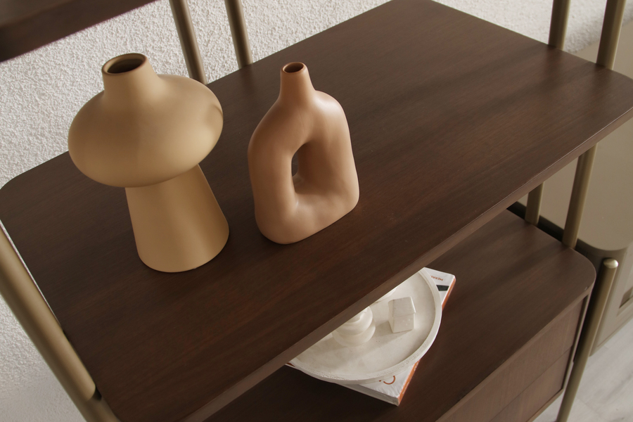 Τα πολλαπλά ράφια προσφέρουν πρακτική οργάνωση για βιβλία, διακοσμητικά και αντικείμενα καθημερινής χρήσης, ενώ η στιβαρή κατασκευή εξασφαλίζει αντοχή και σταθερότητα. Η ισορροπία μεταξύ αισθητικής και λειτουργικότητας την καθιστά ιδανική για σύγχρονα καθιστικά.
