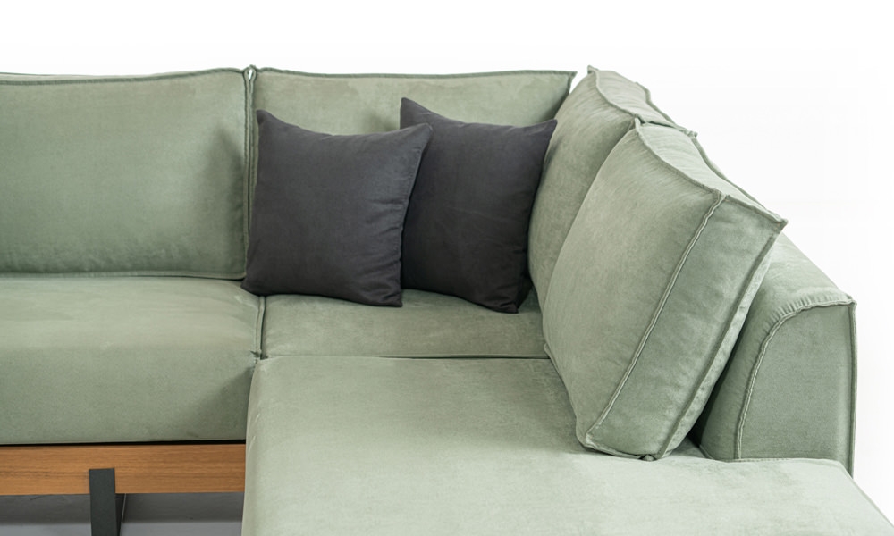Με γέμισμα σιλικόνης στα μαξιλάρια πλάτης και αφρώδες υλικό Foam 400s με διπλή βάτα στα μαξιλάρια του καθίσματος, διαμορφώνεται ένα σταθερό και στιβαρό κάθισμα, που κατόπιν επικοινωνίας μπορεί να διαμορφωθεί. Το ύφασμα της φωτογραφίας είναι αποσπώμενο από τα μαξιλάρια της πλάτης και του καθίσματος και πλενόμενο στους 30οC. Ο γωνιακός καναπές αποτελείται από 2 τεμάχια. Ενδέχεται να υπάρξουν αποκλίσεις εκατοστών, καθώς το προϊόν είναι χειροποίητης κατασκευής και ελληνικής παραγωγής. Παράλληλα, η επιχείρηση διαθέτει γραπτή εγγύηση 10 ετών στα σκελετά και 5 ετών στα υλικά γεμίσματος.