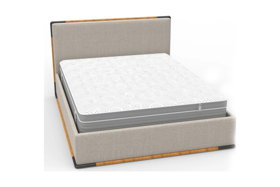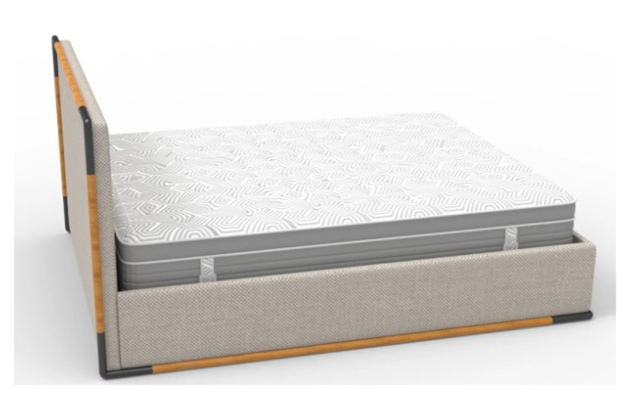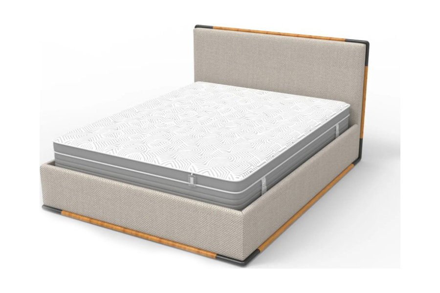 Η βάση του κρεβατιού ενσωματώνει ξύλινα στοιχεία που αναδεικνύουν τον σχεδιασμό, προσθέτοντας μια φυσική πινελιά χωρίς να αλλοιώνουν τον minimal χαρακτήρα του. Ιδανικό για χώρους που συνδυάζουν μοντέρνα αισθητική με φυσικά υλικά.