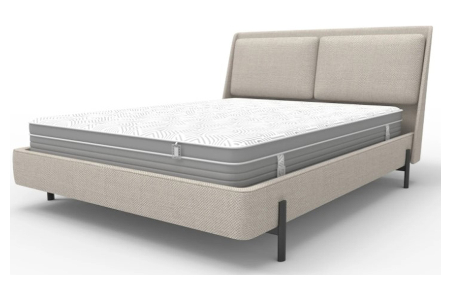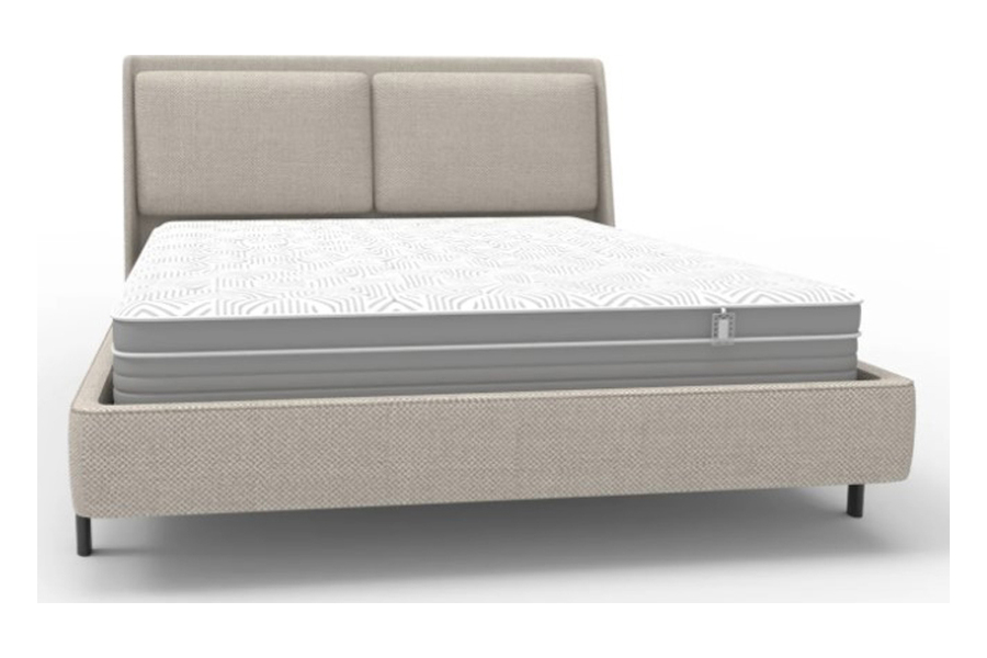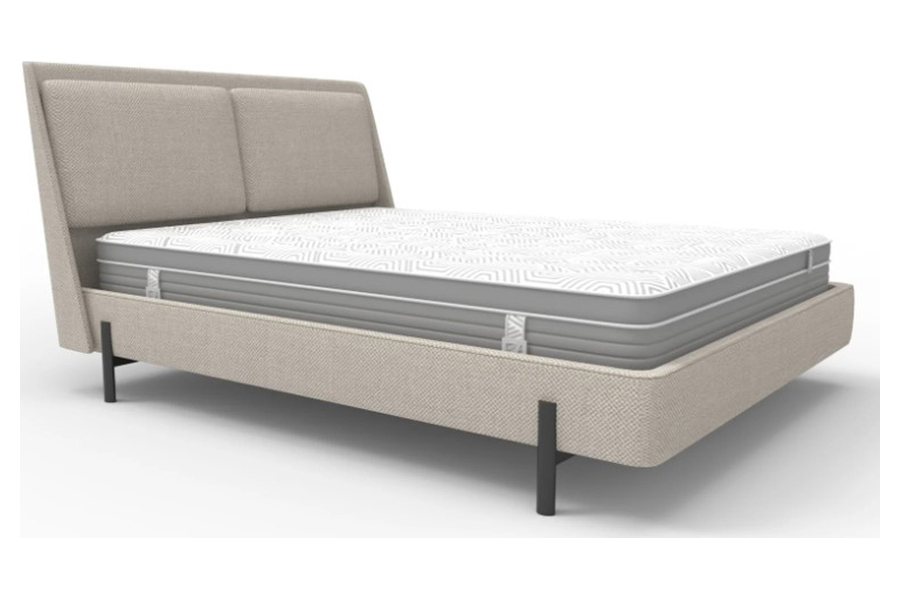 Τα λεπτά μεταλλικά πόδια προσδίδουν ελαφρότητα στο σύνολο και ενισχύουν τον σύγχρονο χαρακτήρα του κρεβατιού. Η στιβαρή βάση υποστηρίζει ιδανικά το στρώμα, εξασφαλίζοντας άνετο και ξεκούραστο ύπνο.