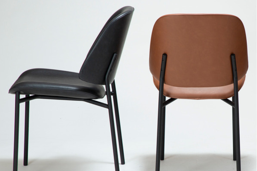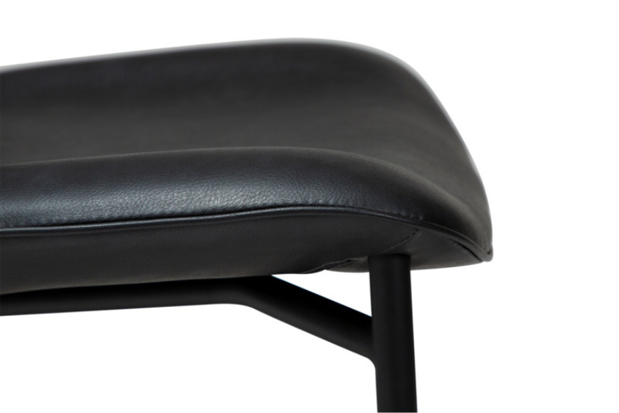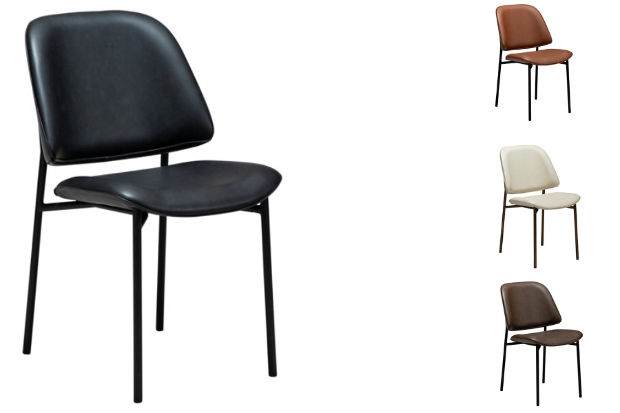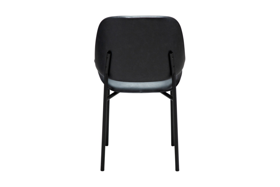 Η απαλά καμπυλωτή πλάτη και το στρογγυλεμένο κάθισμα προσφέρουν εργονομία και άνεση, ενώ η επένδυση από τεχνητό δέρμα χαρίζει κομψότητα και ευκολία στη συντήρηση. Τα μεταλλικά πόδια με διακριτικό και κομψό σχεδιασμό ενισχύουν τη σταθερότητα και προσθέτουν μία refined αισθητική στο σύνολο.