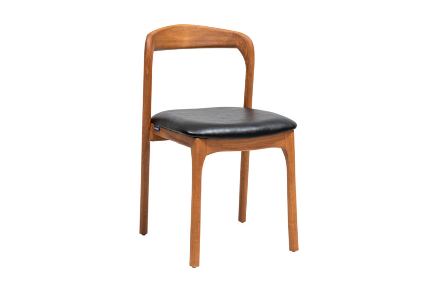 Η Καρέκλα Τραπεζαρίας Olin αποτελεί την επιτομή του σύγχρονου μινιμαλισμού, προσφέροντας μια κομψή και λειτουργική λύση για κάθε τραπεζαρία που εκτιμά τις καθαρές γραμμές. Ο σκελετός της είναι κατασκευασμένος από μασίφ ξύλο υψηλής ποιότητας σε ζεστή φυσική απόχρωση, με ιδιαίτερη προσοχή στο φινίρισμα των ενώσεων που εξασφαλίζουν σταθερότητα και αντοχή στον χρόνο. Ο σχεδιασμός της πλάτης είναι λιτός και διακριτικός, ακολουθώντας μια ήπια καμπύλη που παρέχει την απαραίτητη στήριξη χωρίς να επιβαρύνει οπτικά τον χώρο. Το κάθισμα διαθέτει επένδυση από ποιοτική δερματίνη σε κλασικό μαύρο χρώμα, η οποία δημιουργεί μια δυναμική αντίθεση με τον ξύλινο σκελετό και προσφέρει μια άνετη επιφάνεια που καθαρίζεται εύκολα.