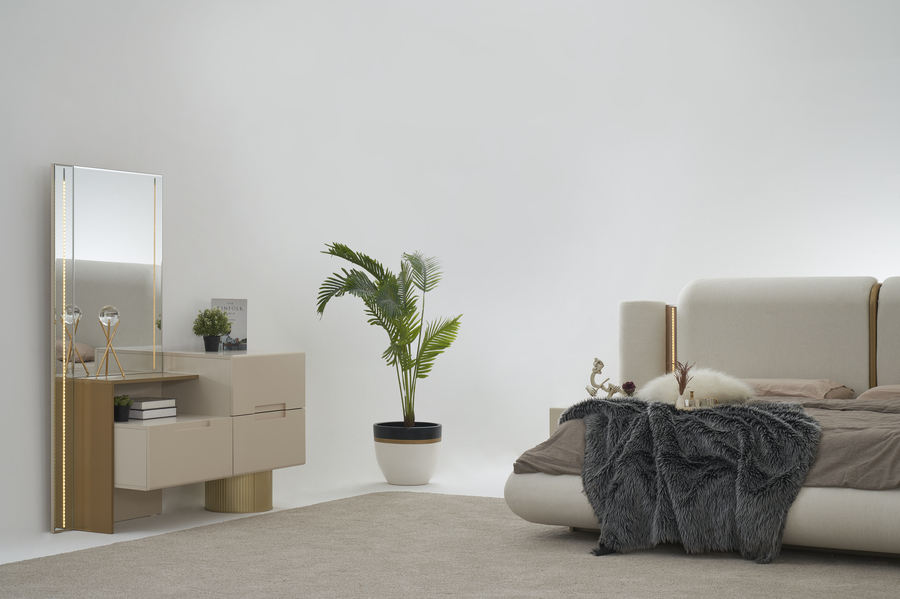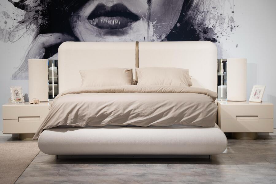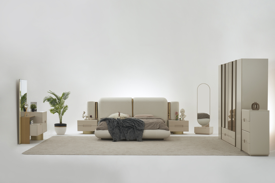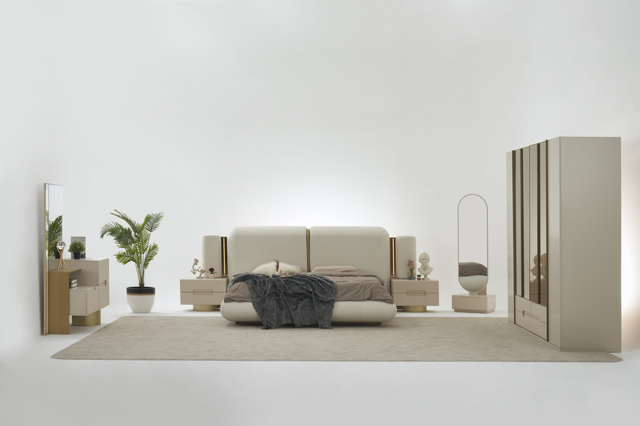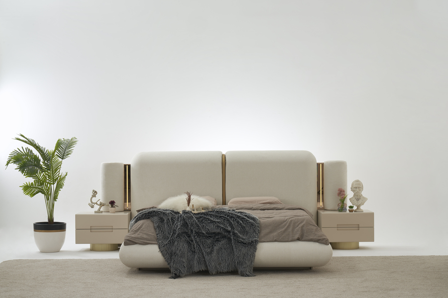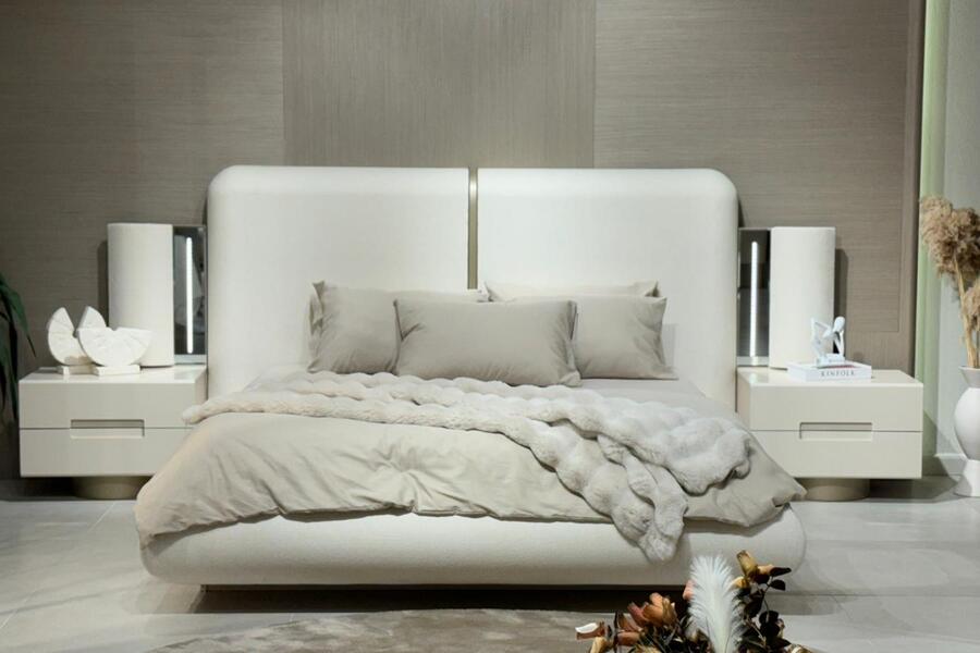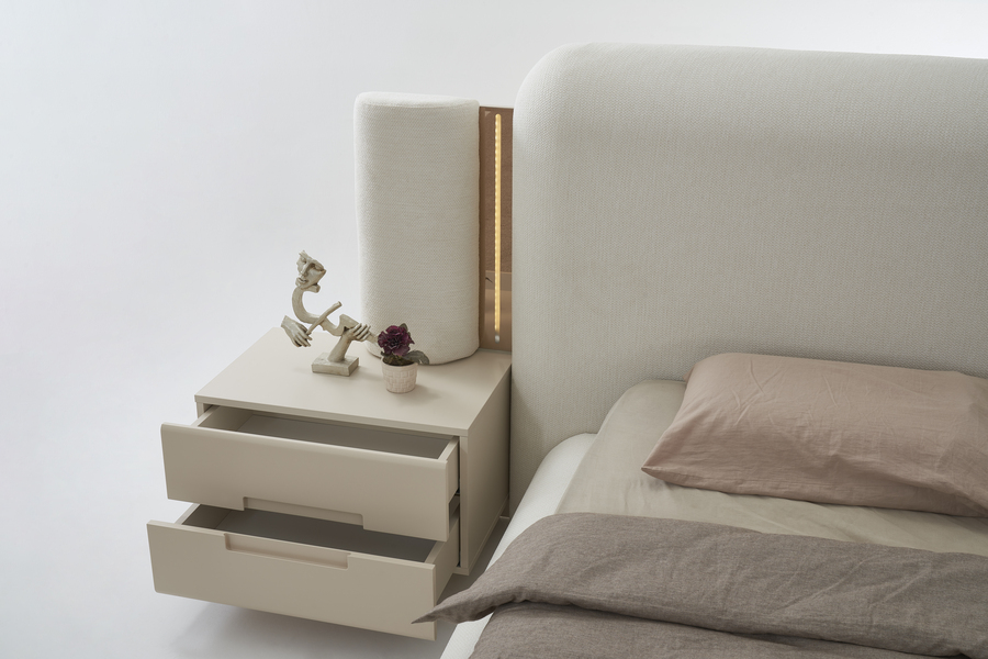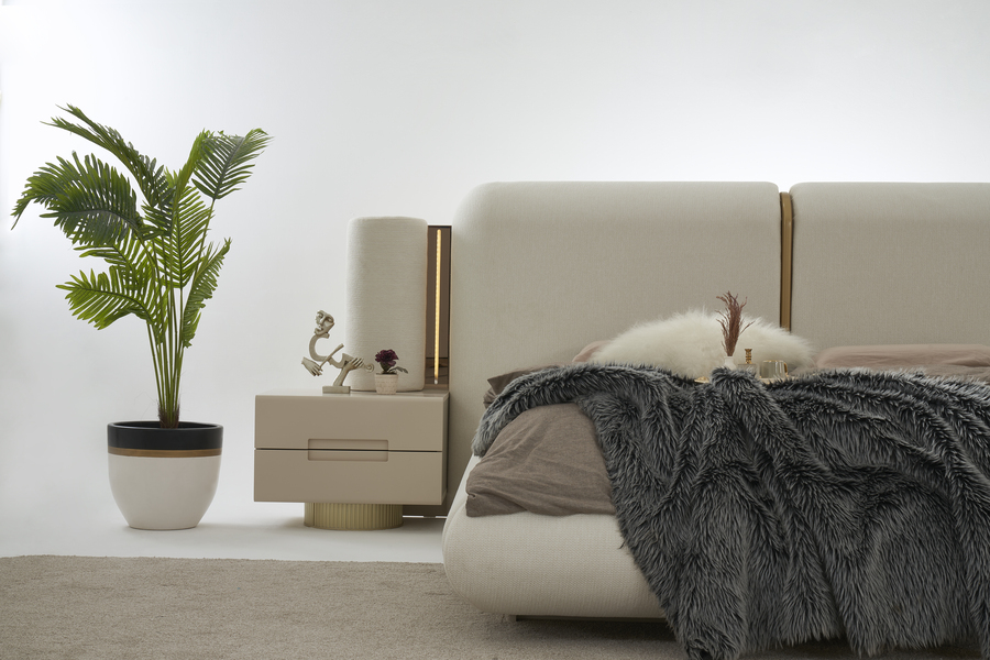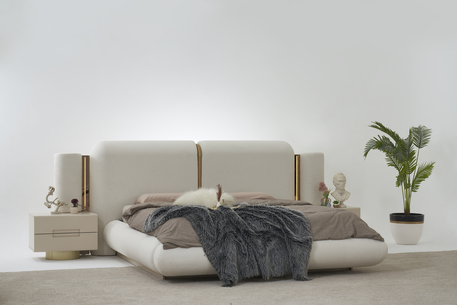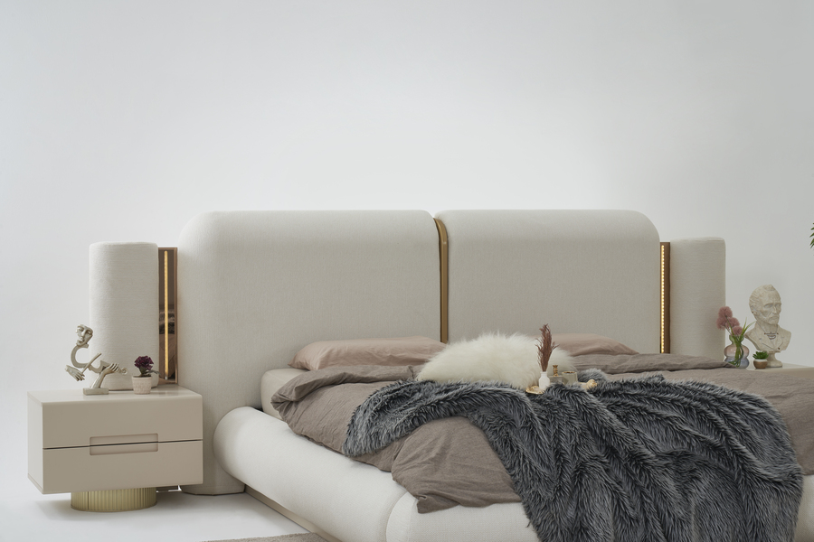 Το ψηλό υφασμάτινο κεφαλάρι δημιουργεί μια αίσθηση ζεστασιάς και χαλάρωσης στο υπνοδωμάτιο, ενώ παράλληλα προσφέρει άνετη στήριξη. Η minimal αισθητική του κρεβατιού το καθιστά ιδανικό για σύγχρονους χώρους με διακριτική και ισορροπημένη διακόσμηση.