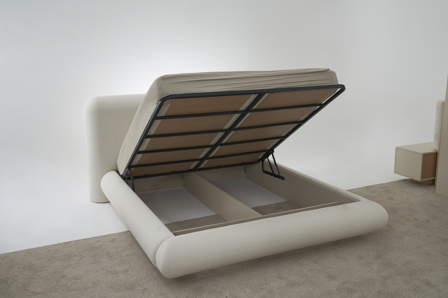 Η βάση του κρεβατιού διαθέτει πρακτικό αποθηκευτικό χώρο κάτω από το στρώμα, ο οποίος ανοίγει εύκολα χάρη στον ανυψωτικό μηχανισμό. Ο αποθηκευτικός χώρος είναι ιδανικός για την οργάνωση κλινοσκεπασμάτων, μαξιλαριών και εποχιακών αντικειμένων, βοηθώντας στη διατήρηση ενός τακτοποιημένου υπνοδωματίου.