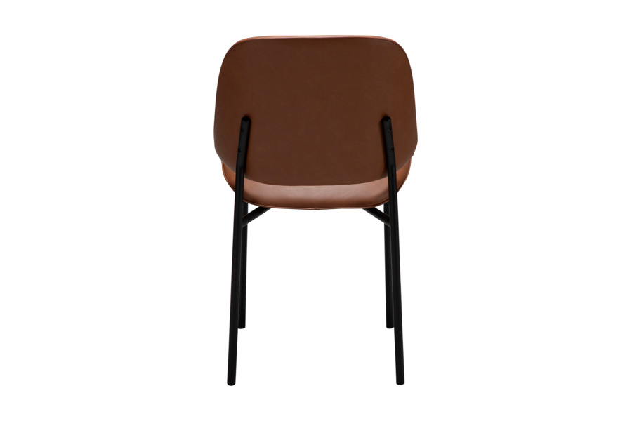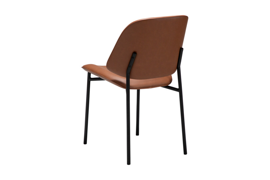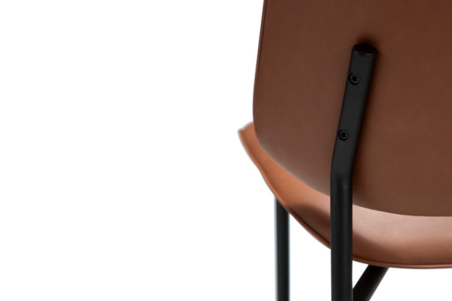 Η απαλά καμπυλωτή πλάτη και το στρογγυλεμένο κάθισμα προσφέρουν εργονομία και άνεση, ενώ η επένδυση από τεχνητό δέρμα χαρίζει κομψότητα και ευκολία στη συντήρηση. Τα μεταλλικά πόδια με διακριτικό και κομψό σχεδιασμό ενισχύουν τη σταθερότητα και προσθέτουν μία refined αισθητική στο σύνολο.
