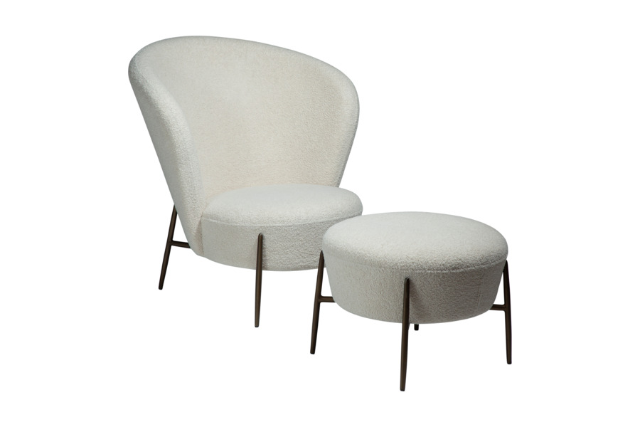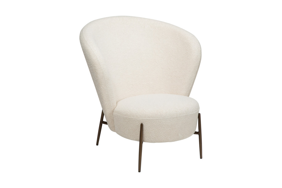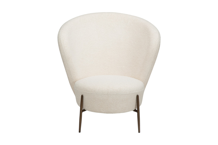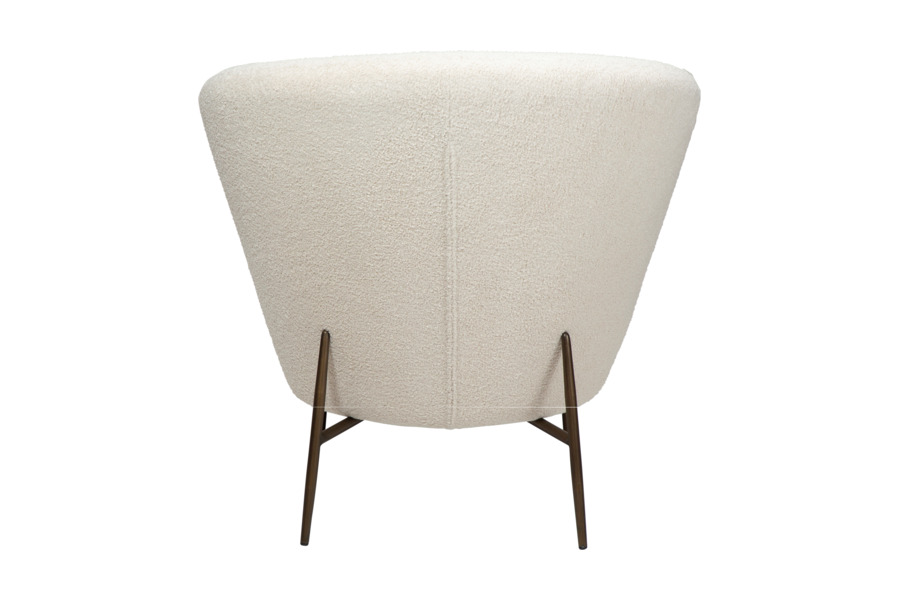 Η επένδυση από ύφασμα bouclé υψηλής ποιότητας προσφέρει απαλή υφή και κομψή εμφάνιση, ενισχύοντας τη ζεστασιά του χώρου. Το στρογγυλεμένο κάθισμα και η εργονομική πλάτη στηρίζουν σωστά το σώμα, καθιστώντας την ιδανική για καθημερινή χρήση.