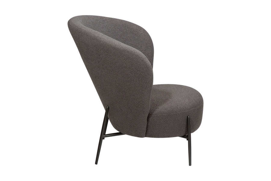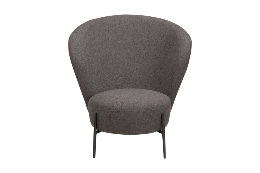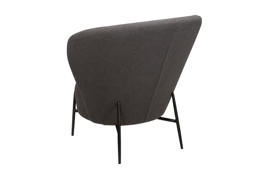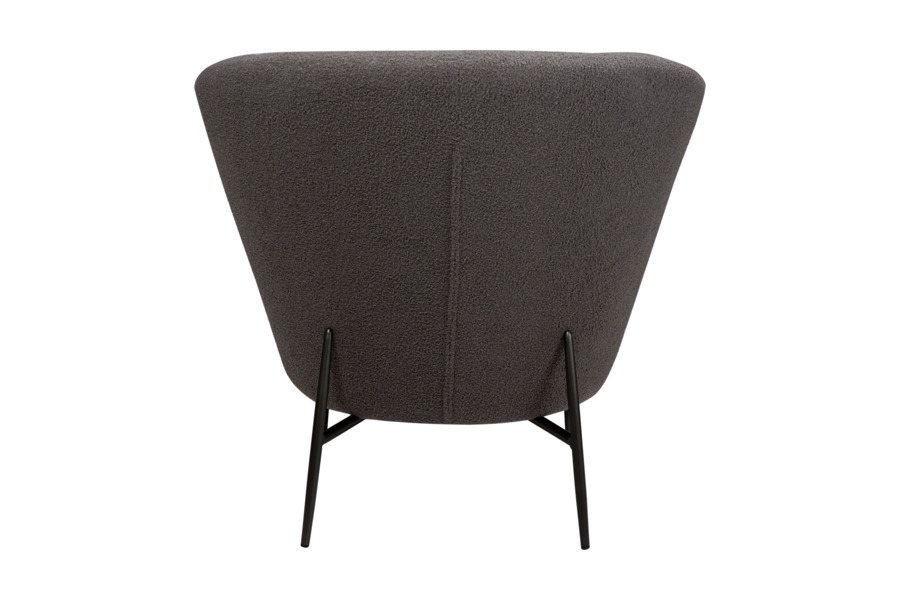 Η επένδυση από ύφασμα bouclé υψηλής ποιότητας προσφέρει απαλή υφή και κομψή εμφάνιση, ενισχύοντας τη ζεστασιά του χώρου. Το στρογγυλεμένο κάθισμα και η εργονομική πλάτη στηρίζουν σωστά το σώμα, καθιστώντας την ιδανική για καθημερινή χρήση.