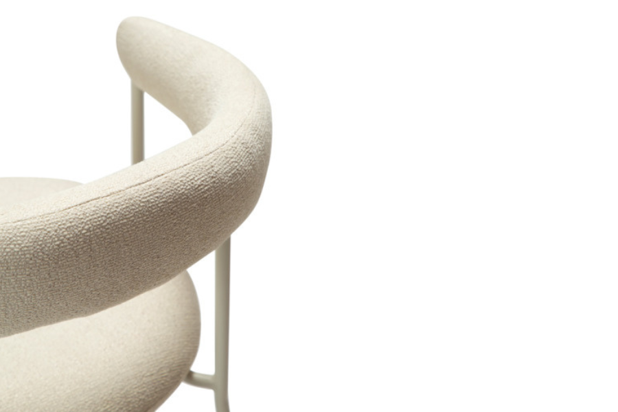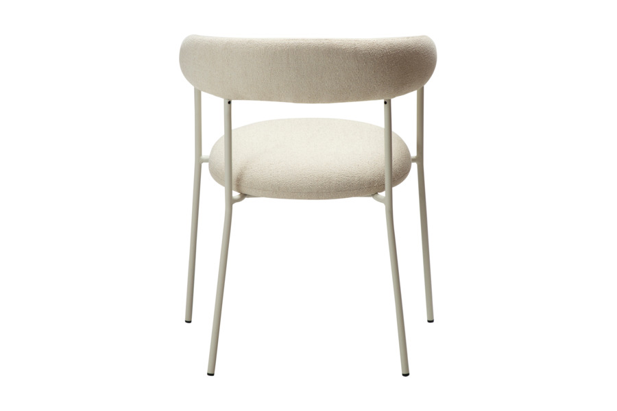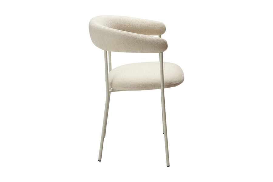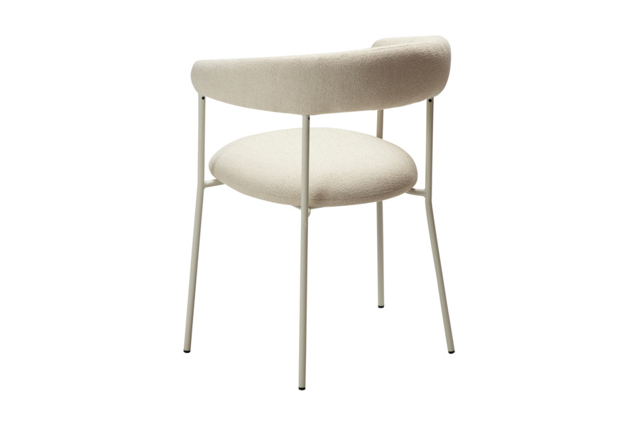 Τα λεπτά μεταλλικά πόδια σε μαύρη απόχρωση δημιουργούν μία ελαφριά και minimal αισθητική, ενώ εξασφαλίζουν σταθερότητα και αντοχή. Η καμπύλη πλάτη που αγκαλιάζει το σώμα σε συνδυασμό με τα μπράτσα προσφέρει επιπλέον στήριξη, αναβαθμίζοντας την εμπειρία καθίσματος.
