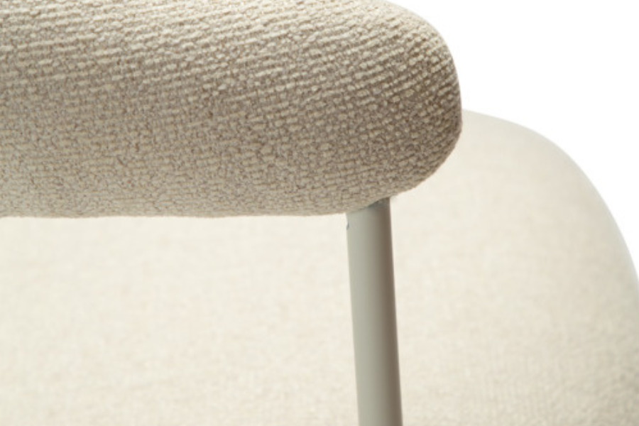 Καρέκλα τραπεζαρίας με μπράτσα και boucle ύφασμα   ...περισσότερα