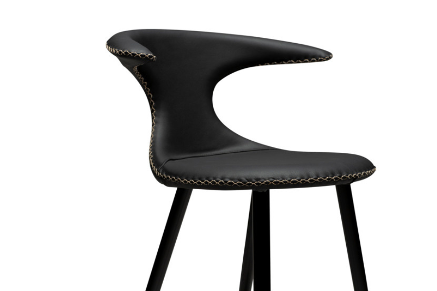 Το σκαμπό counter Flair Black Leather με κωνικά μεταλλικά πόδια σε μαύρο φινίρισμα προσφέρει μία κομψή και σύγχρονη λύση για πάγκους κουζίνας και μοντέρνους χώρους.