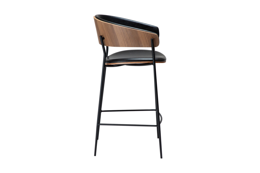 Σκαμπό Crib Vintage Black Leather / Walnut Veneer