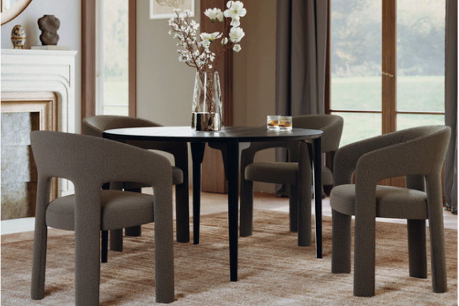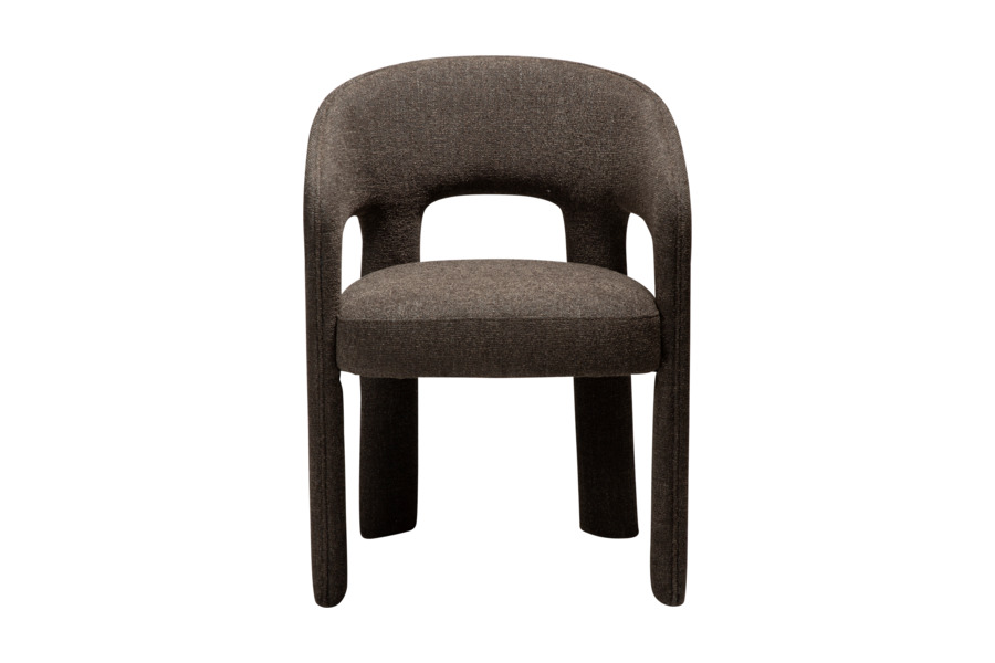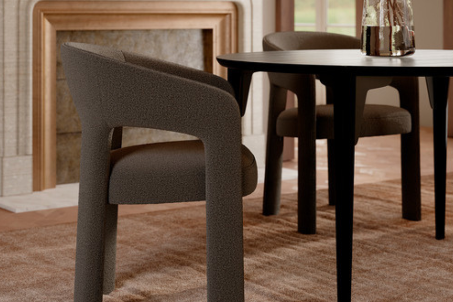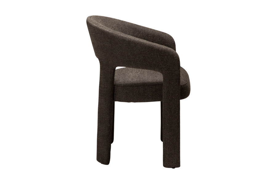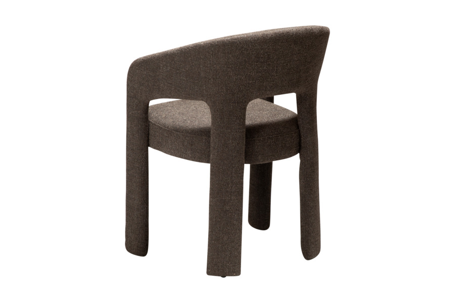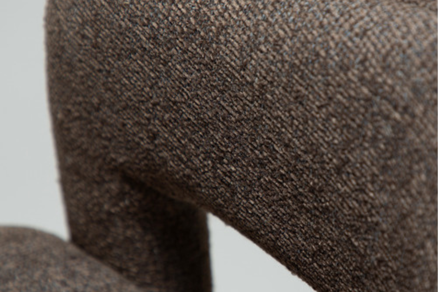 Η επένδυση από ύφασμα boucle σε απόχρωση raven black προσφέρει πλούσια υφή και κομψότητα, ενώ ενισχύει την αίσθηση πολυτέλειας. Το κάθισμα είναι ευρύχωρο και άνετο, με εργονομική πλάτη που αγκαλιάζει το σώμα, καθιστώντας την καρέκλα ιδανική για καθημερινή χρήση αλλά και για ιδιαίτερες περιστάσεις.
