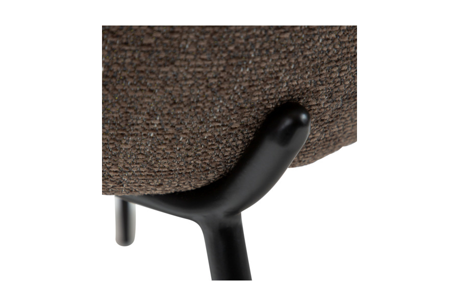 Η επένδυση από ύφασμα boucle σε απόχρωση  Major Brown δημιουργεί μία ζεστή και εκλεπτυσμένη αίσθηση, ενώ η υφή της προσθέτει βάθος και ενδιαφέρον στο σύνολο. Το κάθισμα είναι αναπαυτικό και κατάλληλο για καθημερινή χρήση, είτε σε οικιακό είτε σε επαγγελματικό περιβάλλον.