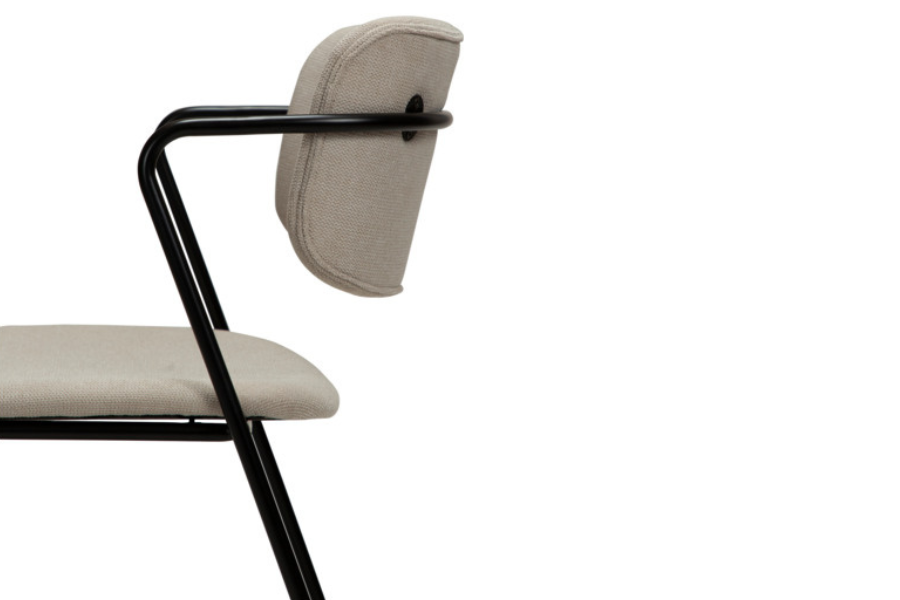 Το κάθισμα και η πλάτη διαθέτουν επένδυση από ύφασμα σε απόχρωση crow black, προσφέροντας διακριτική υφή και άνετη αίσθηση κατά τη χρήση. Το ελαφρώς καμπύλο κάθισμα ενισχύει την εργονομία και εξασφαλίζει άνεση στην καθημερινότητα.