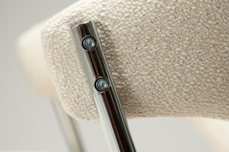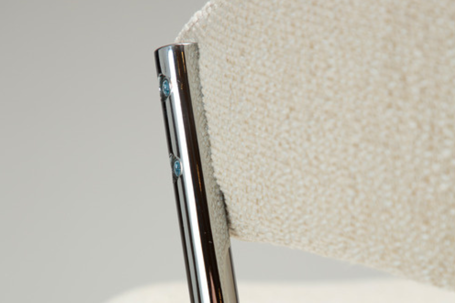 Το κάθισμα και η πλάτη διαθέτουν επένδυση από τεχνητό δέρμα σε Simply Beige απόχρωση, προσφέροντας λεία υφή και εύκολη συντήρηση. Η εργονομική καμπύλη της πλάτης υποστηρίζει σωστά το σώμα, ενισχύοντας την άνεση κατά τη χρήση.